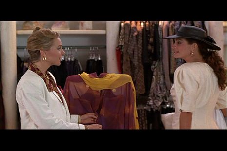 La ambientación, en Los Angeles y su versión de lujo. Plagada de estereotipos que te hacen suspirar de satisfacción o de alivio: mítica es la escena de la «dependienta odiosa» que después es vapuleada por Julia y la Visa Oro de Richard… Momento mágico para todas las que nos hemos sentido observadas bajo el ojo crítico de la dependienta repelente…