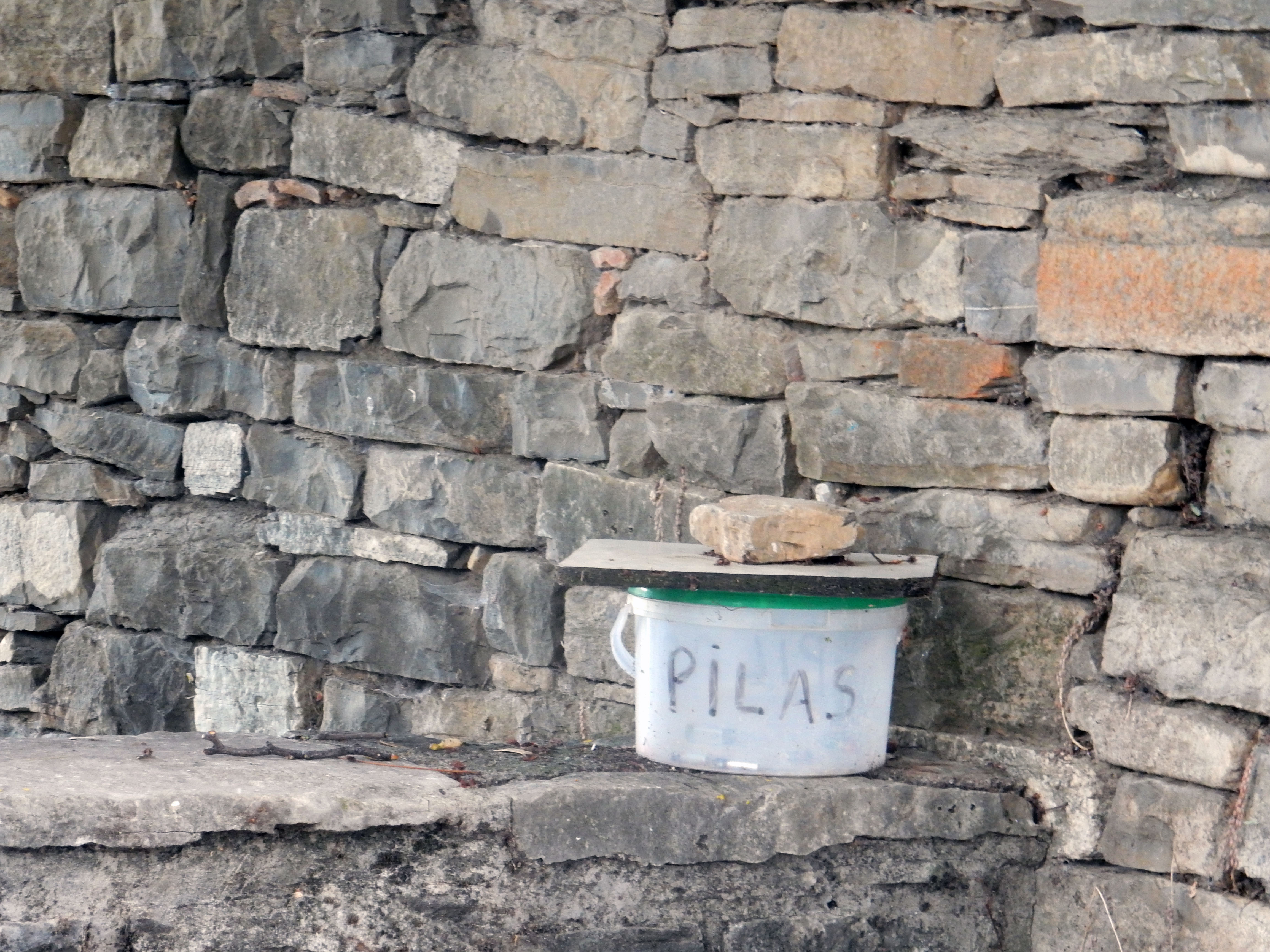 Nos avisan de que en la casa del pueblo hay dos enjambres. El primero, en lo alto , entre la fachada y el interior: el tejado vibra con un ir y venir de abejas. Hace tiempo que vemos el trasiego pero como nunca han accedido a la vivienda y están en las alturas, nos acostumbramos a verlas. Este año, han llamado la atención de los que van un par de semanas al pueblo. El segundo enjambre ocupa el pequeño granero que, en los últimos años, se convirtió en taller de cucharas y utensilios de boj. Allí no podemos entrar.