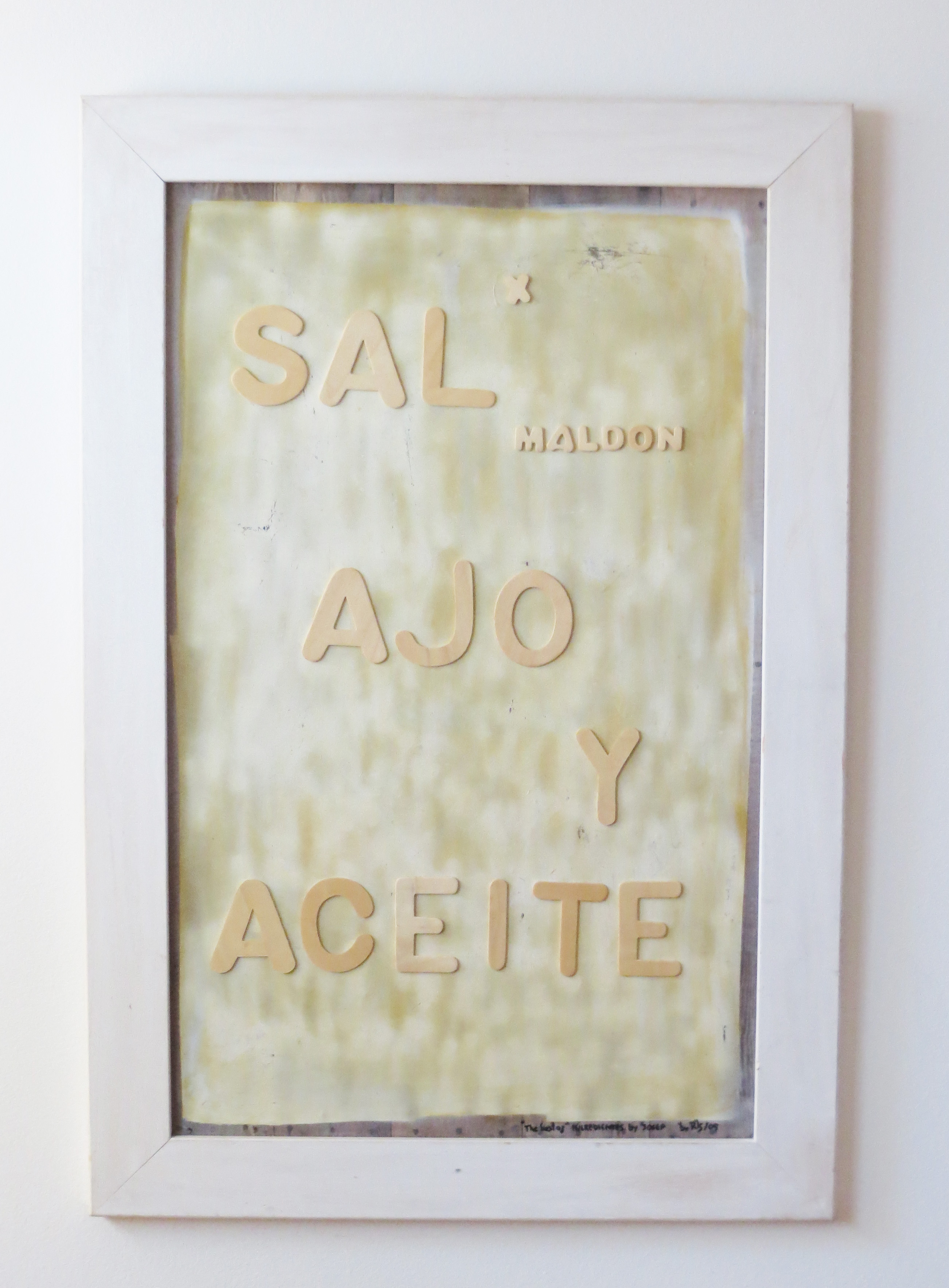 El cuadro se titula “Sal , Ajo y Aceite”.