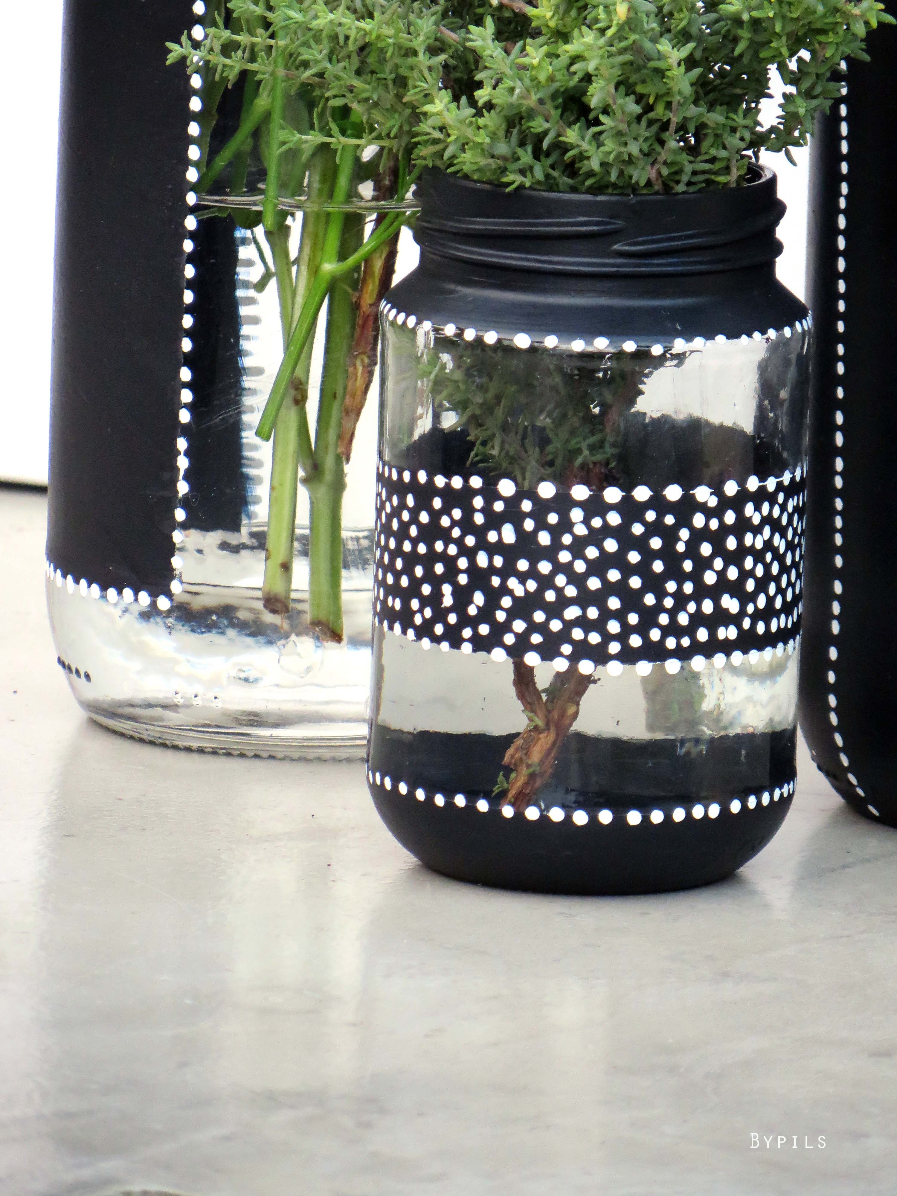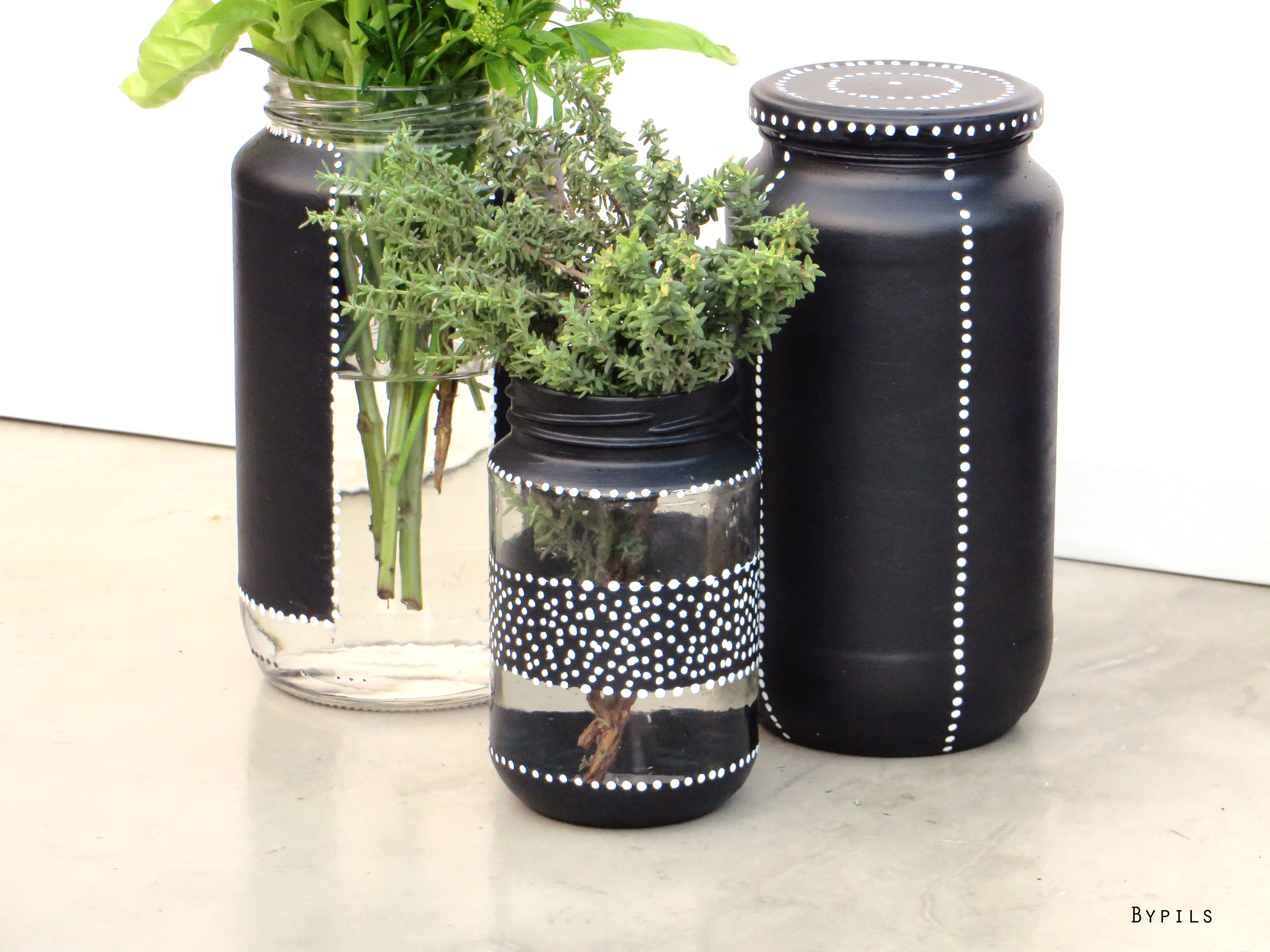 Voy acumulando tarros (y tarritos) de cristal de mis aceitunas preferidas y, además, tengo pintura de pizarra negra y …un rotulador permanente blanco y…muchas ganas de momento terapéutico con un DIY de estos tan fáciles y relajantes.