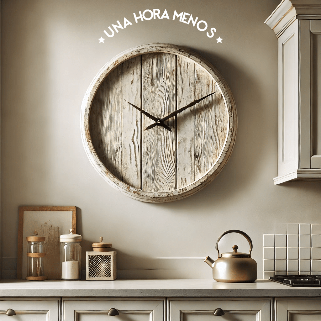 Sólo hay un reloj en toda la casa que tengo que manipular. Es el de la cocina, el que compramos en esa tienda del Soho londinense pensando que era vintage y después, resultó ser una baratija “made in China” … Cuando acabo de ver la película que me ha tenido dormitando en el sofá, decido dejar el tema listo. Son las dos. No, las tres…