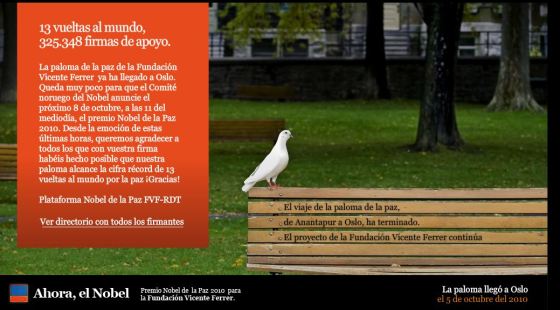 N.B : Y, por cierto, el año que viene, volvamos a hacer que la paloma de la Fundación Vicente Ferrer llegue a Oslo. No hay que dejar de volar…