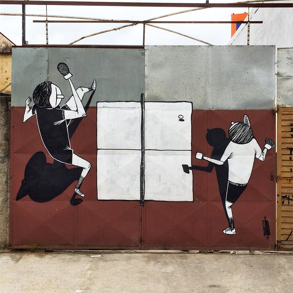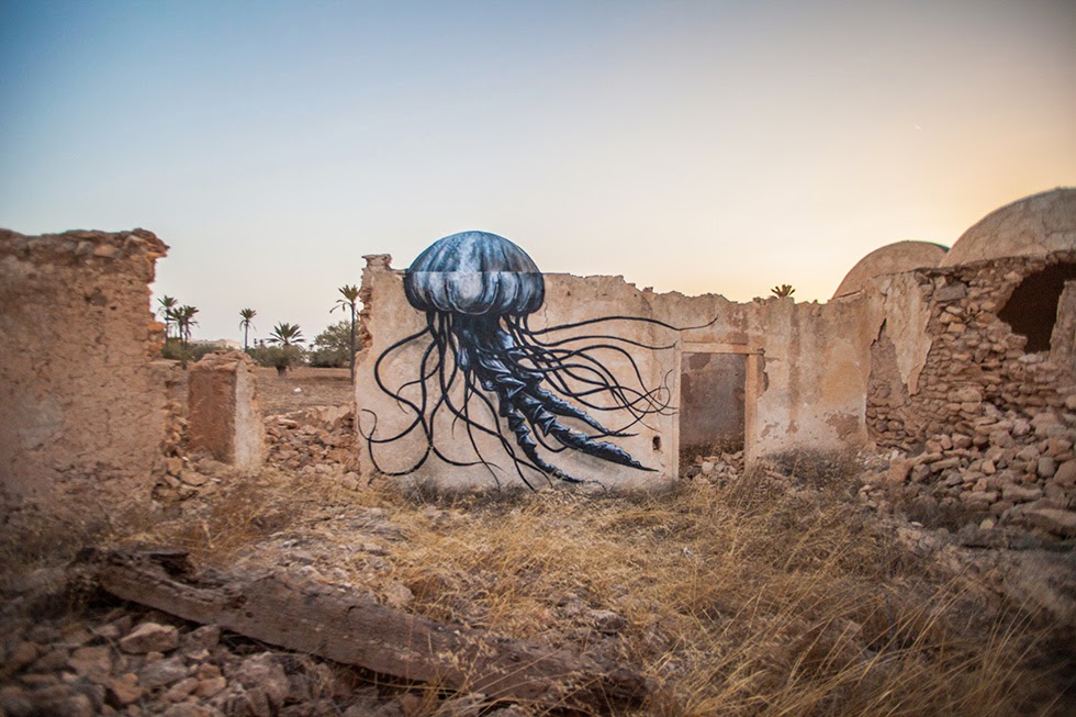 Y para acabar, Street Art pero… en un muro. Y en el agua.