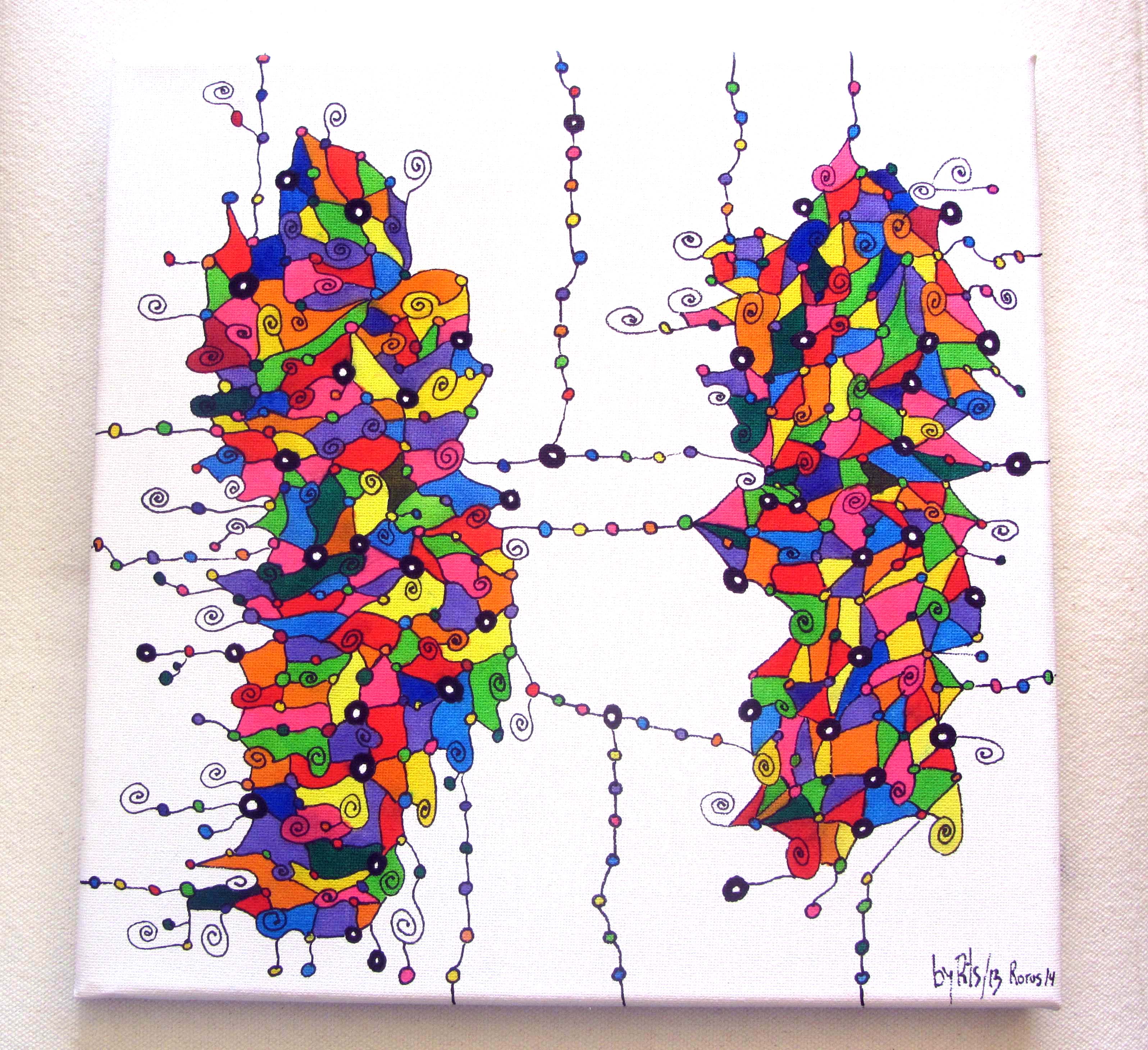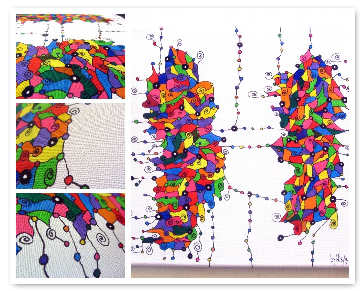 En este cuadro, paré aquí y como todo cuadro que se precie tiene que tener un título, lo llamé “3D”. Por ser original ; – ).
