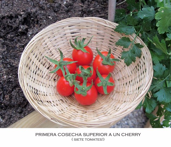 Le ha hecho tanta ilusión que mis tomates , de repente, han convertido en un tesoro. Yo decía aquello de : ¡Por Dios, que sólo son un puñadito de cherrys! Pero me sentía absolutamente complacida al ver cómo los tocaba, los olía…encantada. Disfrutando a tope de ese momento.