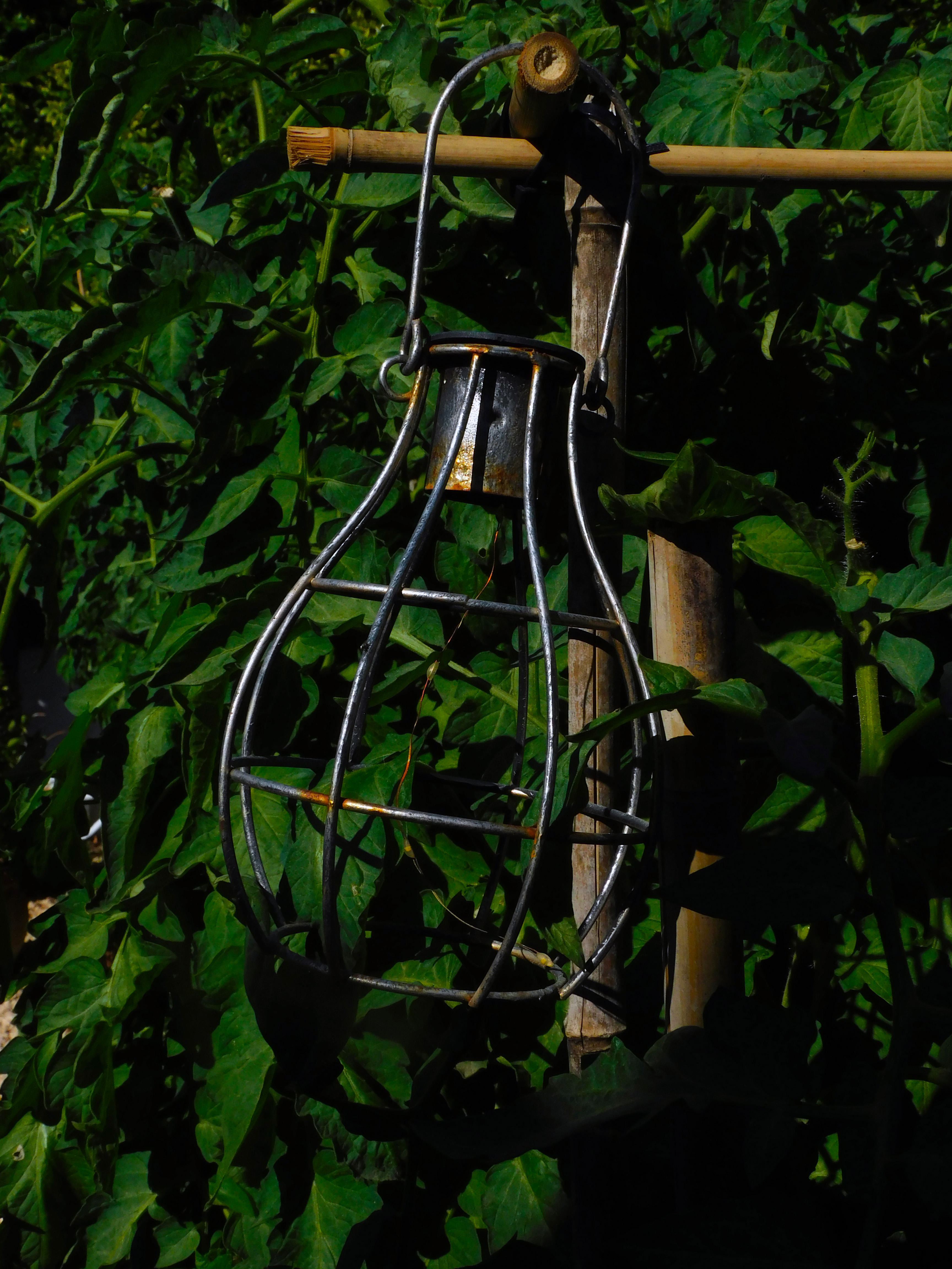 El farolillo de energía solar, colgado en una tomatera es para foto. Lo enfoco y ese momento, me lleva a pensar que todo irá mejor de lo que dicen.